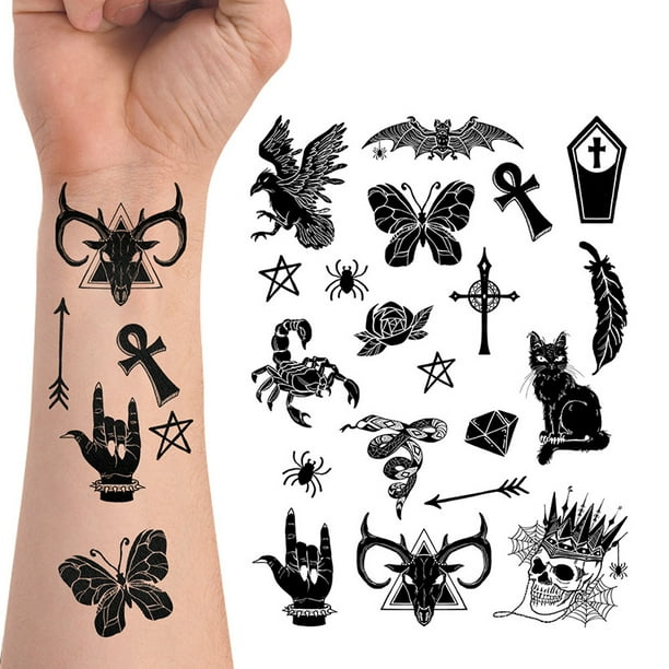 Wirester Temporary Tattoos For Women Girls Boys Kids Waterproof Fake Tattoos On Face Hand Neck Wrist Arm Shoulder Chest Back Legs Set Gothic Nbsp Line Designs Scorpion Skulls Cross Cat Bat Walmart Com
