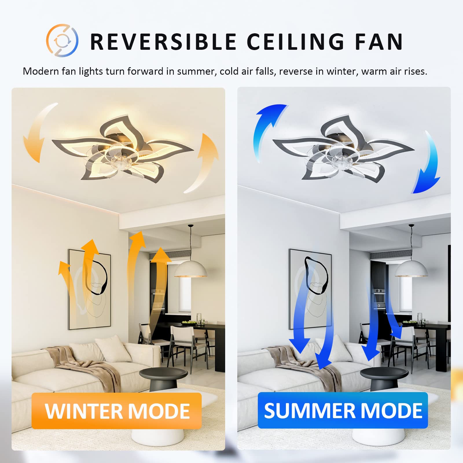 17 2 Modern Indoor Flush Mount Ceiling Fan With Lights Dimmable Low Profile Ceiling Fans With Remote Control Smart 3 Light Color Change And 6 Speeds For Bedroom Living Room Kitchen Amazon Com